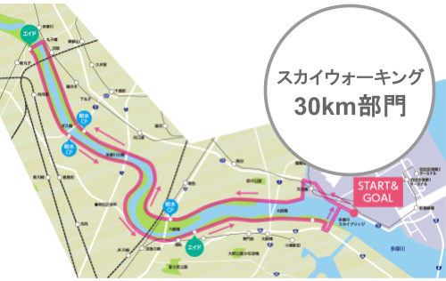 | 種目 | ① スカイウォーキング 30㎞部門 ② スカイウォーキングビギナー部門( 12㎞) ③ スカイウォーキングファミリー部門( 10㎞:2名以上 ) | ||||||||||||||||||